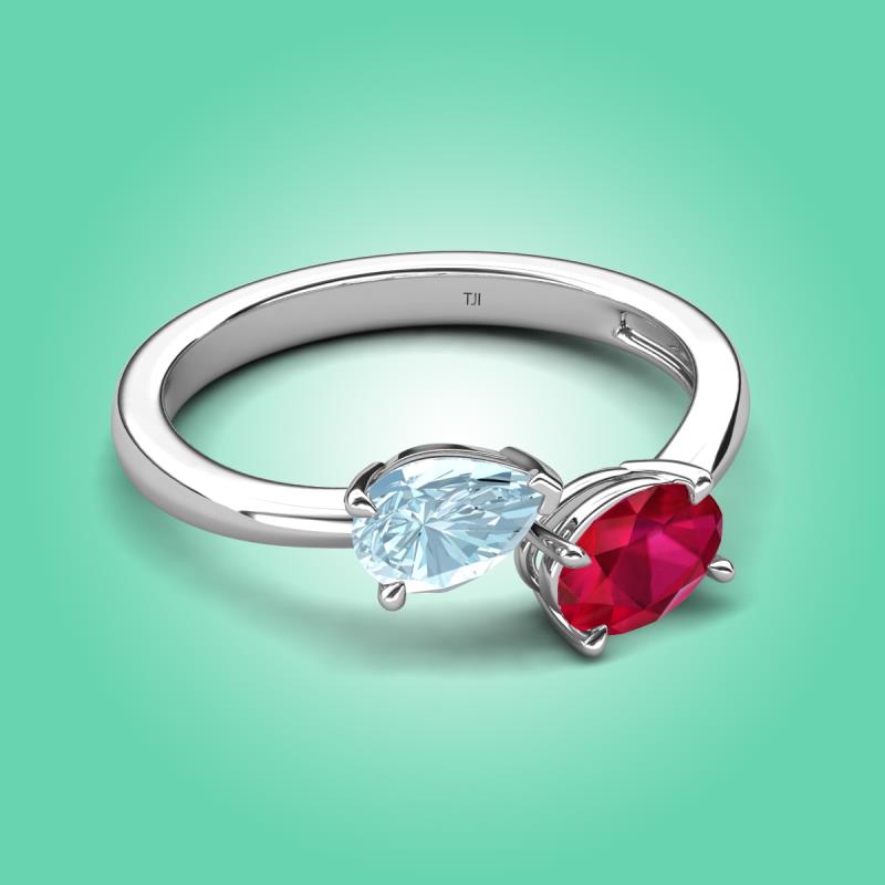 1.50 ctw Aquamarine Pear Shape 7x5 mm & Ruby Oval Shape 7x5 mm with Prong setting Two Stone Duo Women Engagement Ring in Sterling Silver More Details ...