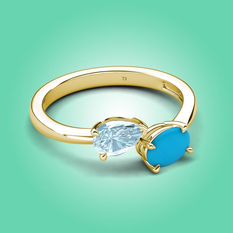 1.30 ctw Aquamarine Pear Shape 7x5 mm & Turquoise Oval Shape 7x5 mm with Prong setting Two Stone Duo Women Engagement Ring in 18K Yellow Gold More Details ...