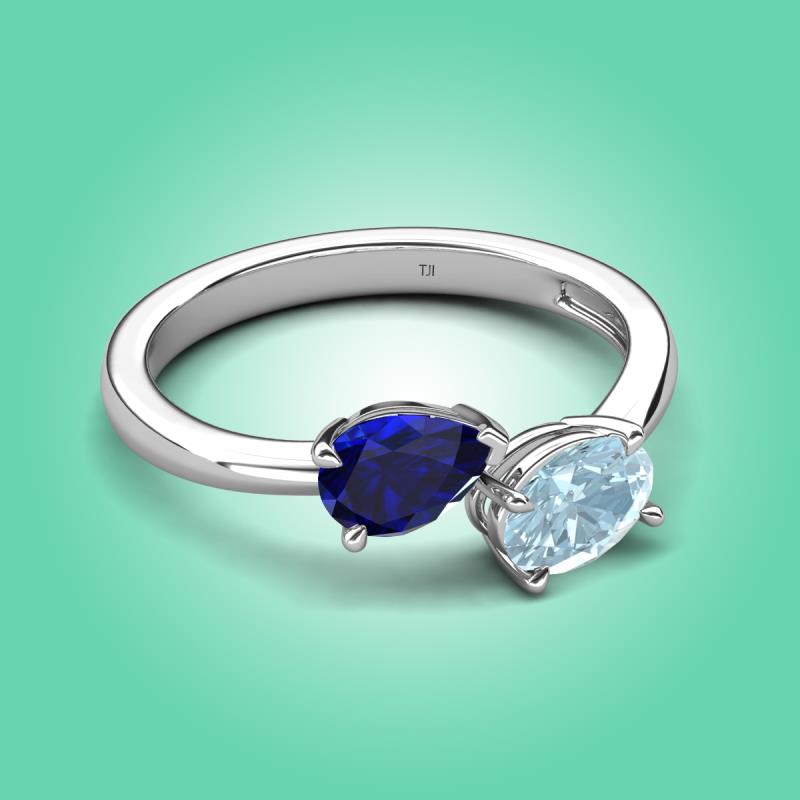 1.62 ctw Blue Sapphire Pear Shape 7x5 mm & Aquamarine Oval Shape 7x5 mm with Prong setting Two Stone Duo Women Engagement Ring in Platinum More Details ...