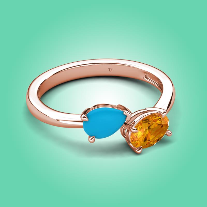 1.62 ctw Blue Sapphire Pear Shape 7x5 mm & Citrine Oval Shape 7x5 mm with Prong setting Two Stone Duo Women Engagement Ring in 14K Rose Gold More Details ...