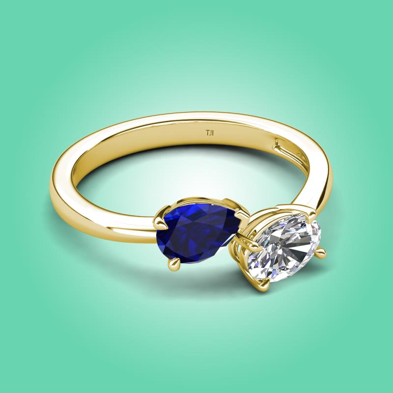 1.70 ctw Blue Sapphire Pear Shape 7x5 mm & GIA Certified Natural Diamond Oval Shape 7x5 mm with Prong setting Two Stone Duo Women Engagement Ring in 18K Yellow Gold More Details ...