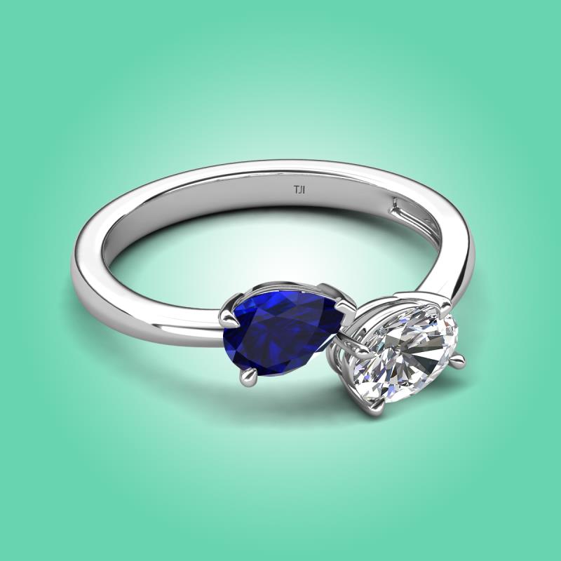 The Blue Sapphire Pear Shape and IGI Certified Lab Grown Diamond Oval Shape Toi Et Moi Duo Ring of 1.70 ctw is the perfect representation of your unique and everlasting bond. The pear and oval shaped gemstones set in a Prong setting, complement each other perfectly, creating a stunning and timeless design that will capture the heart of your loved one, symbolizing your eternal love and commitment that will last a lifetime.