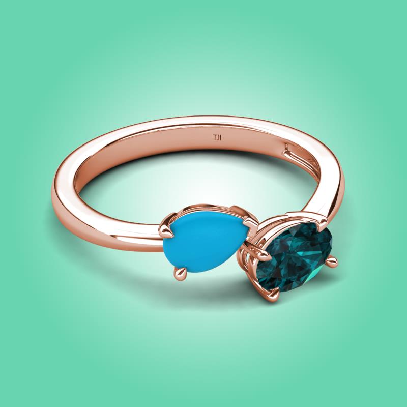 1.90 ctw Blue Sapphire Pear Shape 7x5 mm & London Blue Topaz Oval Shape 7x5 mm with Prong setting Two Stone Duo Women Engagement Ring in 18K Rose Gold More Details ...