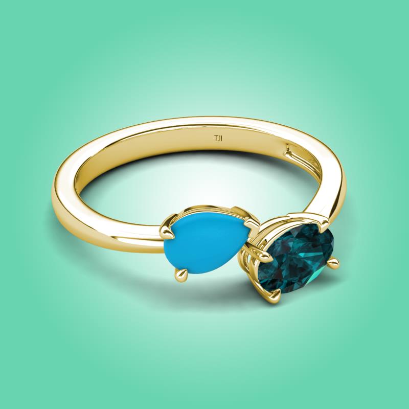 1.90 ctw Blue Sapphire Pear Shape 7x5 mm & London Blue Topaz Oval Shape 7x5 mm with Prong setting Two Stone Duo Women Engagement Ring in 18K Yellow Gold More Details ...