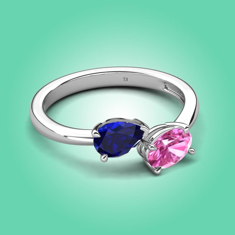 1.90 ctw Blue Sapphire Pear Shape 7x5 mm & Pink Sapphire Oval Shape 7x5 mm with Prong setting Two Stone Duo Women Engagement Ring in 14K White Gold More Details ...