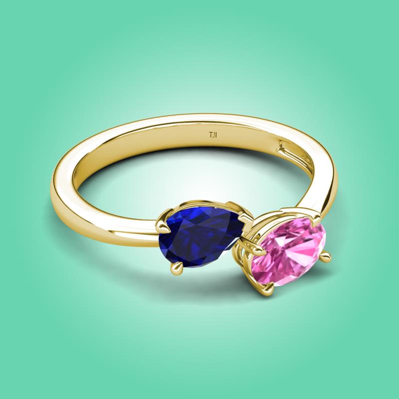 1.90 ctw Blue Sapphire Pear Shape 7x5 mm & Pink Sapphire Oval Shape 7x5 mm with Prong setting Two Stone Duo Women Engagement Ring in 14K Yellow Gold More Details ...