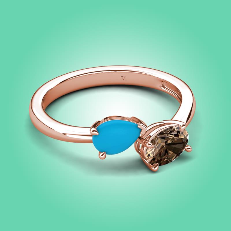 1.65 ctw Blue Sapphire Pear Shape 7x5 mm & Smoky Quartz Oval Shape 7x5 mm with Prong setting Two Stone Duo Women Engagement Ring in 14K Rose Gold More Details ...