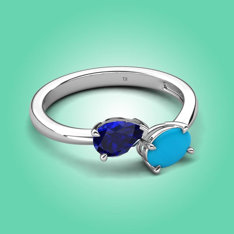 1.60 ctw Blue Sapphire Pear Shape 7x5 mm & Turquoise Oval Shape 7x5 mm with Prong setting Two Stone Duo Women Engagement Ring in 14K White Gold More Details ...