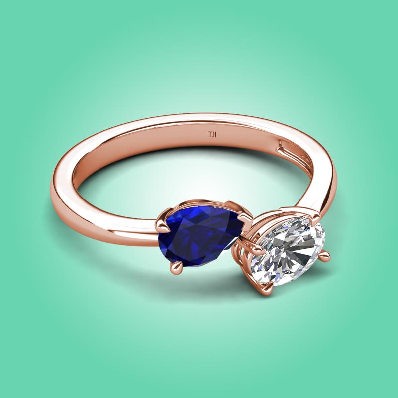 1.90 ctw Blue Sapphire Pear Shape 7x5 mm & White Sapphire Oval Shape 7x5 mm with Prong setting Two Stone Duo Women Engagement Ring in 14K Rose Gold More Details ...
