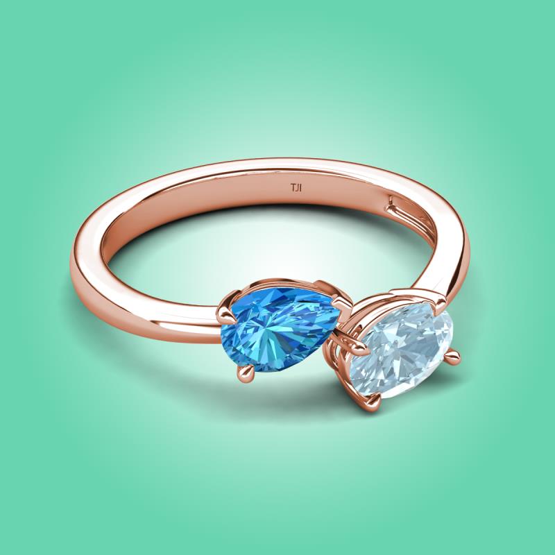 1.57 ctw Blue Topaz Pear Shape 7x5 mm & Aquamarine Oval Shape 7x5 mm with Prong setting Two Stone Duo Women Engagement Ring in 14K Rose Gold More Details ...