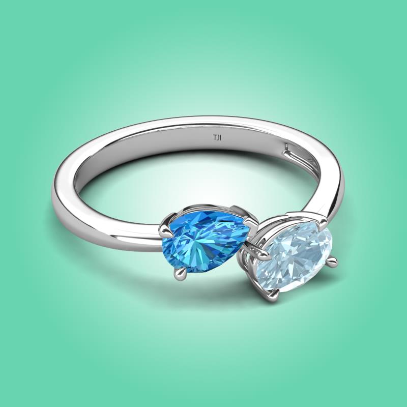 1.57 ctw Blue Topaz Pear Shape 7x5 mm & Aquamarine Oval Shape 7x5 mm with Prong setting Two Stone Duo Women Engagement Ring in 18K White Gold More Details ...