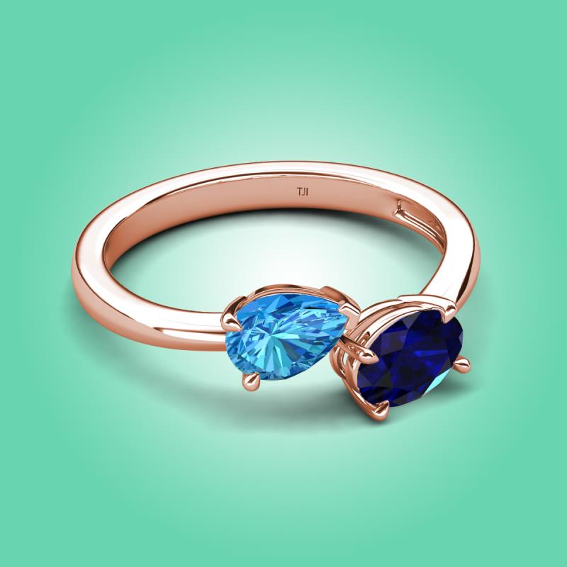 1.75 ctw Blue Topaz Pear Shape 7x5 mm & Blue Sapphire Oval Shape 7x5 mm with Prong setting Two Stone Duo Women Engagement Ring in 14K Rose Gold More Details ...