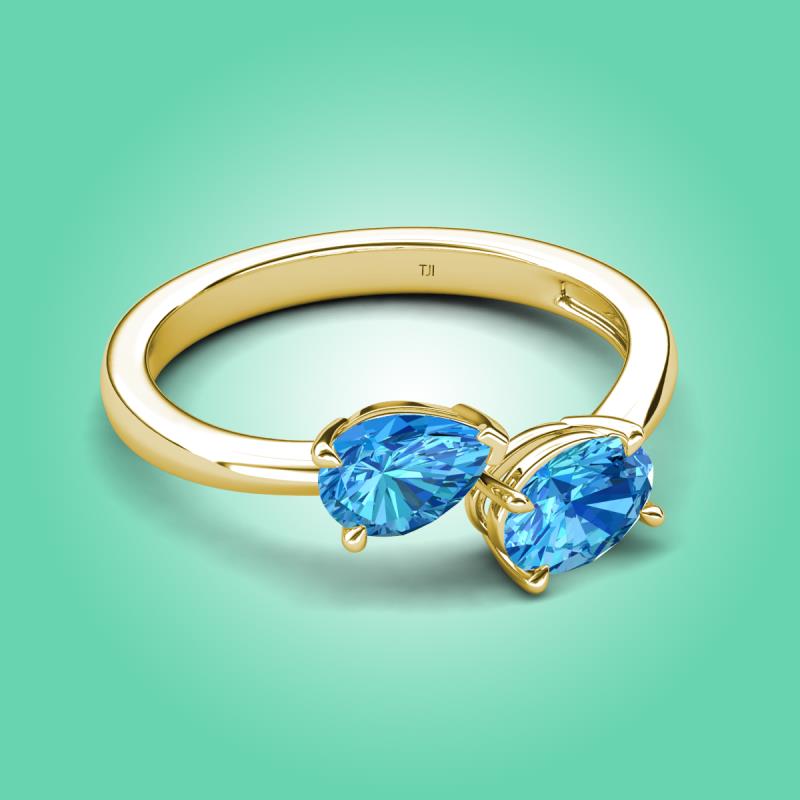 1.85 ctw Blue Topaz Pear Shape 7x5 mm & Blue Topaz Oval Shape 7x5 mm with Prong setting Two Stone Duo Women Engagement Ring in 10K Yellow Gold More Details ...