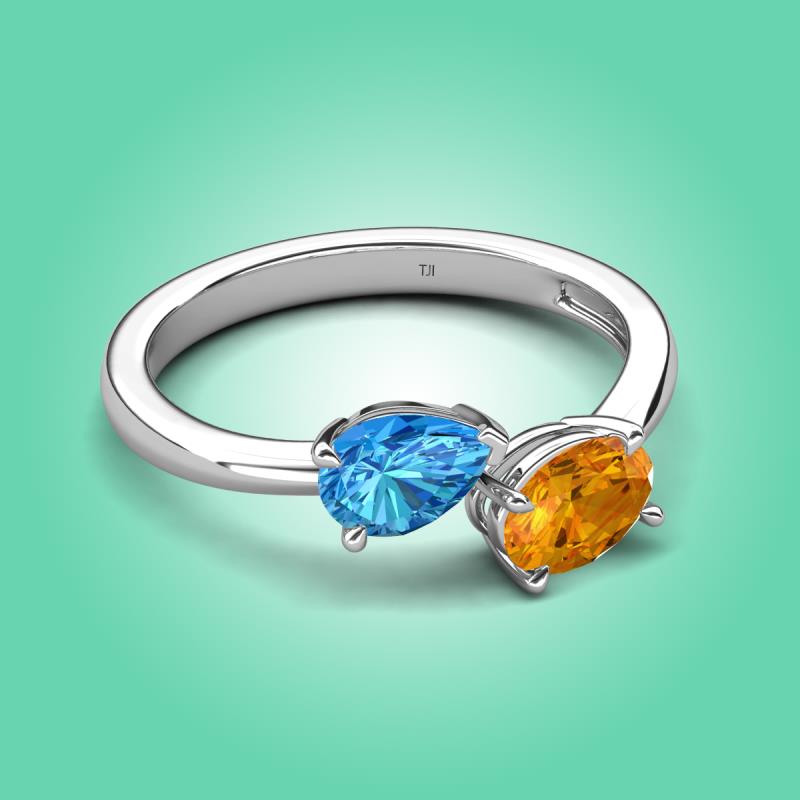 1.57 ctw Blue Topaz Pear Shape 7x5 mm & Citrine Oval Shape 7x5 mm with Prong setting Two Stone Duo Women Engagement Ring in Platinum More Details ...