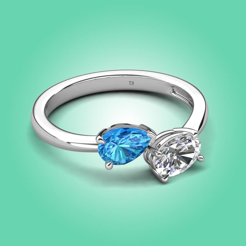 The Blue Topaz Pear Shape and IGI Certified Lab Grown Diamond Oval Shape Toi Et Moi Duo Ring of 1.65 ctw is the perfect representation of your unique and everlasting bond. The pear and oval shaped gemstones set in a Prong setting, complement each other perfectly, creating a stunning and timeless design that will capture the heart of your loved one, symbolizing your eternal love and commitment that will last a lifetime.