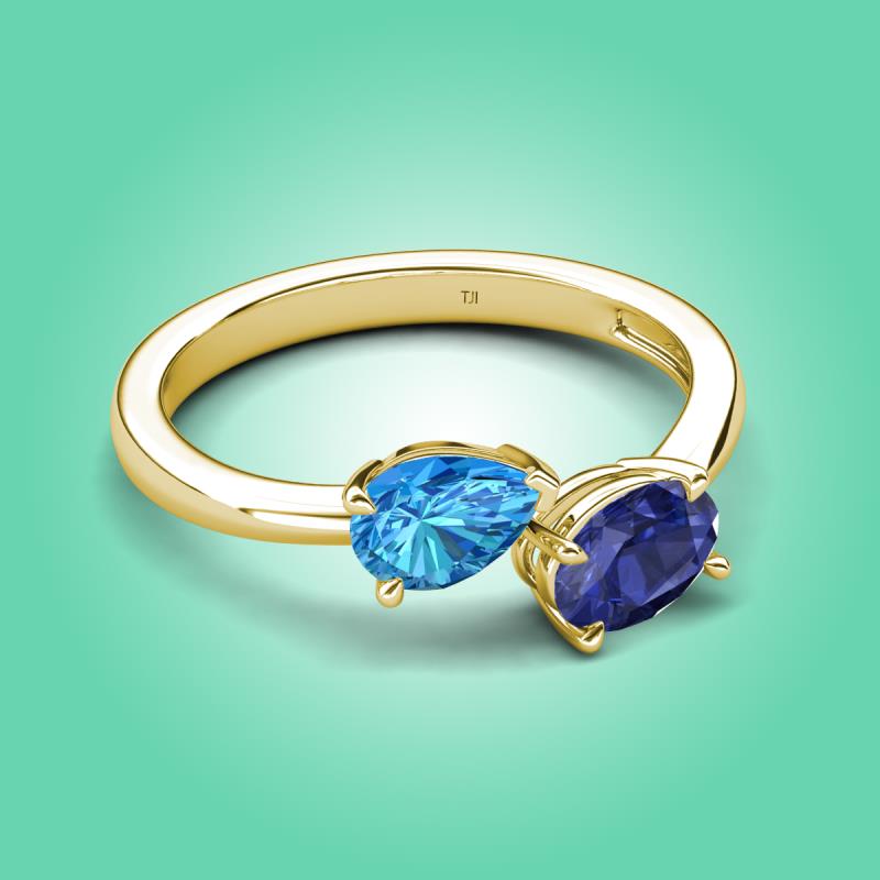 1.52 ctw Blue Topaz Pear Shape 7x5 mm & Iolite Oval Shape 7x5 mm with Prong setting Two Stone Duo Women Engagement Ring in 18K Yellow Gold More Details ...