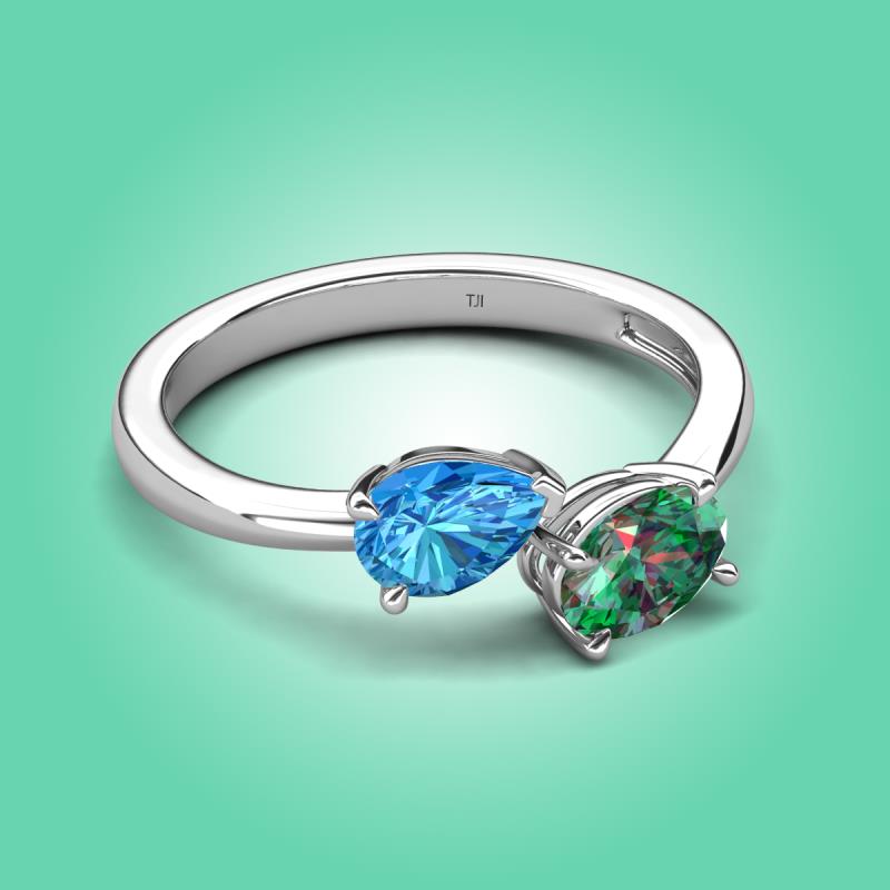 2.01 ctw Blue Topaz Pear Shape 7x5 mm & Lab Created Alexandrite Oval Shape 7x5 mm with Prong setting Two Stone Duo Women Engagement Ring in 14K White Gold More Details ...
