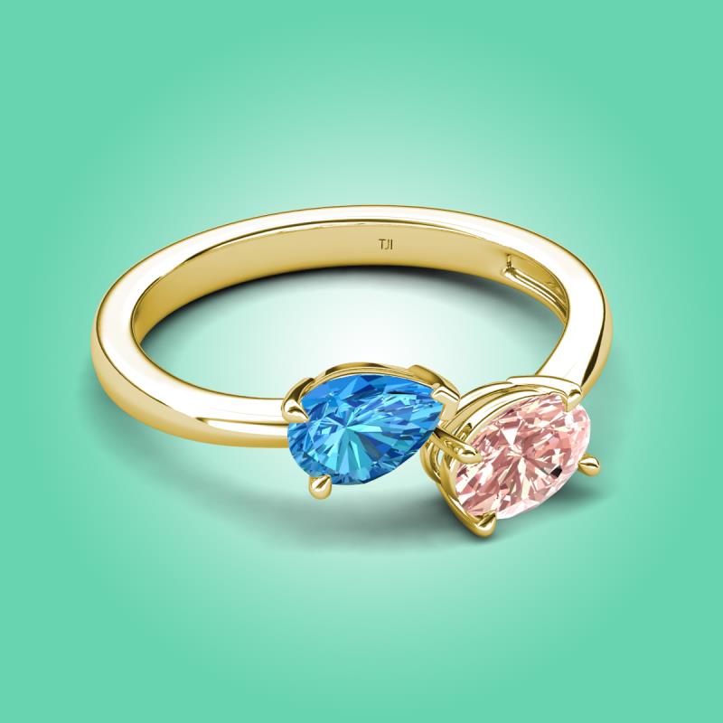 1.60 ctw Blue Topaz Pear Shape 7x5 mm & Morganite Oval Shape 7x5 mm with Prong setting Two Stone Duo Women Engagement Ring in 14K Yellow Gold More Details ...