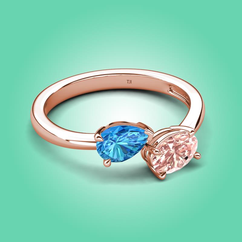 1.60 ctw Blue Topaz Pear Shape 7x5 mm & Morganite Oval Shape 7x5 mm with Prong setting Two Stone Duo Women Engagement Ring in 18K Rose Gold More Details ...