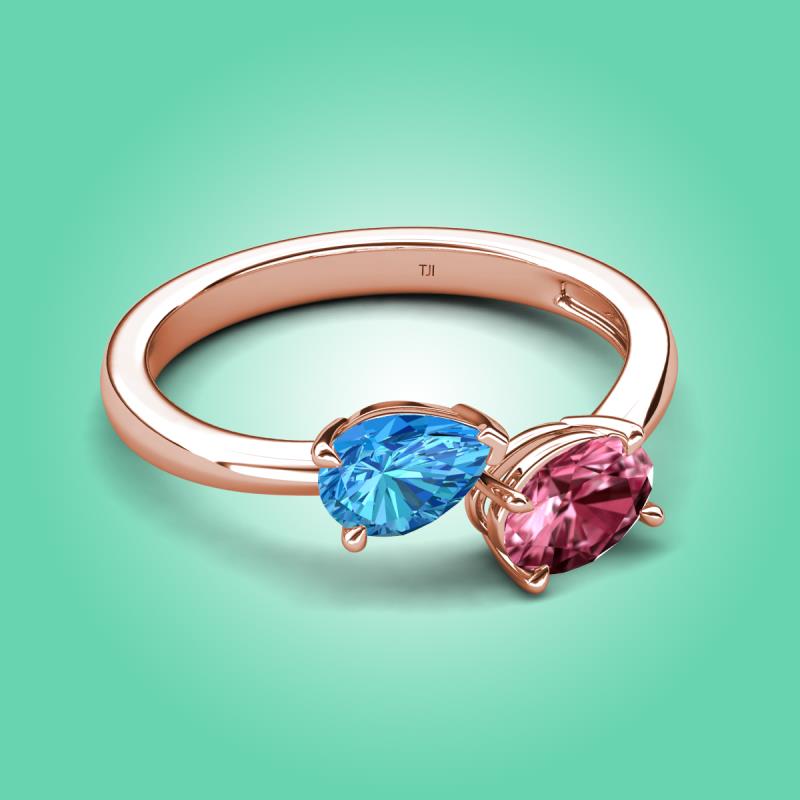 1.70 ctw Blue Topaz Pear Shape 7x5 mm & Pink Tourmaline Oval Shape 7x5 mm with Prong setting Two Stone Duo Women Engagement Ring in 14K Rose Gold More Details ...