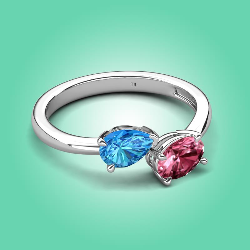 1.70 ctw Blue Topaz Pear Shape 7x5 mm & Pink Tourmaline Oval Shape 7x5 mm with Prong setting Two Stone Duo Women Engagement Ring in Platinum More Details ...