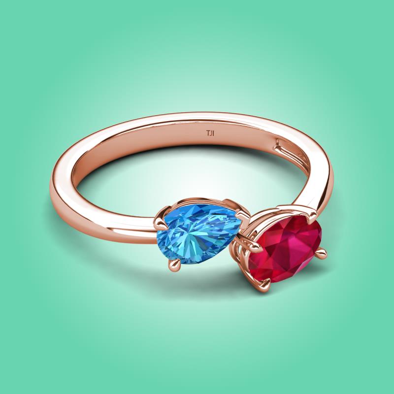1.75 ctw Blue Topaz Pear Shape 7x5 mm & Ruby Oval Shape 7x5 mm with Prong setting Two Stone Duo Women Engagement Ring in 10K Rose Gold More Details ...