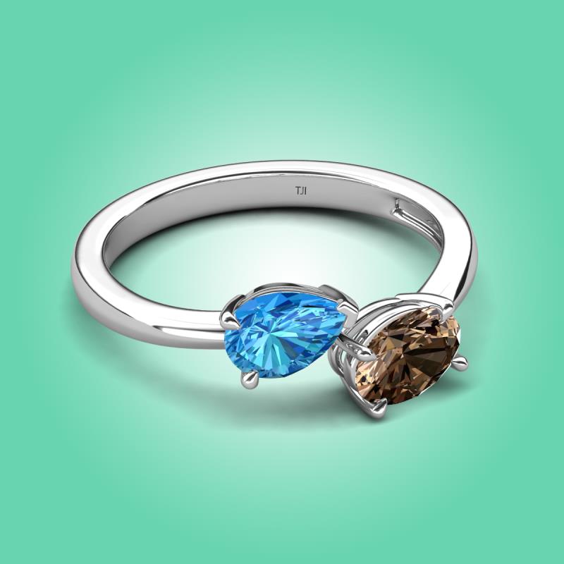1.60 ctw Blue Topaz Pear Shape 7x5 mm & Smoky Quartz Oval Shape 7x5 mm with Prong setting Two Stone Duo Women Engagement Ring in Platinum More Details ...