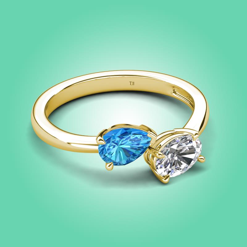 1.85 ctw Blue Topaz Pear Shape 7x5 mm & White Sapphire Oval Shape 7x5 mm with Prong setting Two Stone Duo Women Engagement Ring in 18K Yellow Gold More Details ...