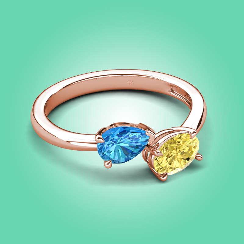 1.85 ctw Blue Topaz Pear Shape 7x5 mm & Yellow Sapphire Oval Shape 7x5 mm with Prong setting Two Stone Duo Women Engagement Ring in 14K Rose Gold More Details ...