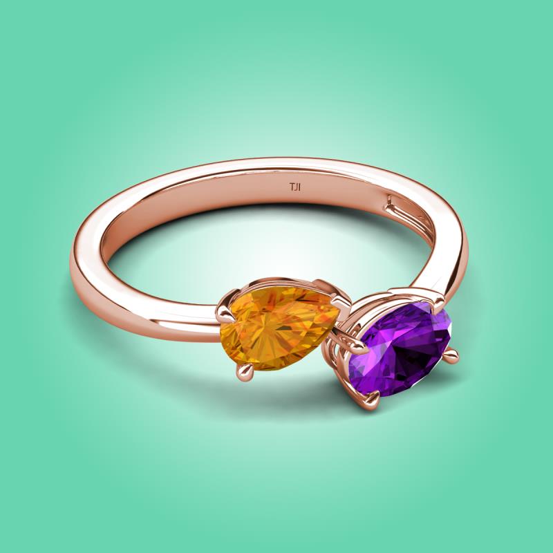 1.37 ctw Citrine Pear Shape 7x5 mm & Amethyst Oval Shape 7x5 mm with Prong setting Two Stone Duo Women Engagement Ring in 14K Rose Gold More Details ...
