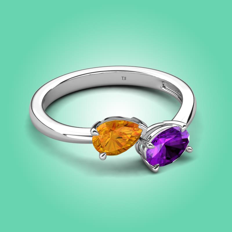 1.37 ctw Citrine Pear Shape 7x5 mm & Amethyst Oval Shape 7x5 mm with Prong setting Two Stone Duo Women Engagement Ring in Platinum More Details ...