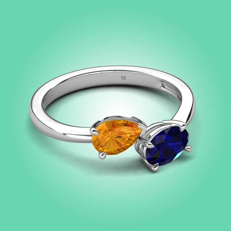 1.55 ctw Citrine Pear Shape 7x5 mm & Blue Sapphire Oval Shape 7x5 mm with Prong setting Two Stone Duo Women Engagement Ring in Platinum More Details ...