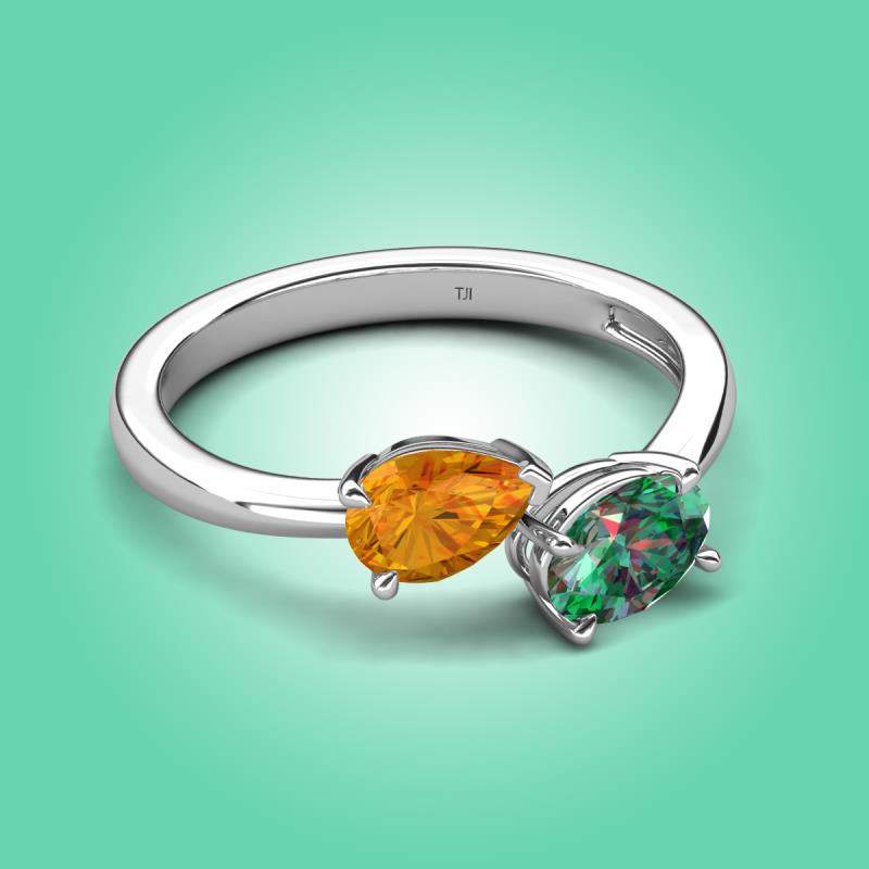 1.81 ctw Citrine Pear Shape 7x5 mm & Lab Created Alexandrite Oval Shape 7x5 mm with Prong setting Two Stone Duo Women Engagement Ring in 14K White Gold More Details ...