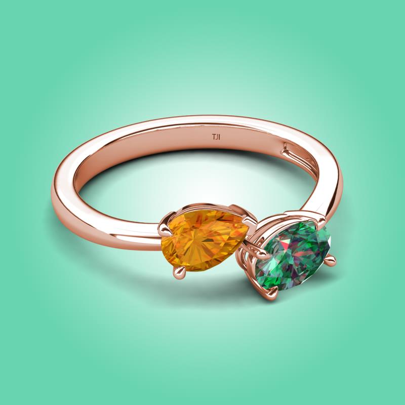1.81 ctw Citrine Pear Shape 7x5 mm & Lab Created Alexandrite Oval Shape 7x5 mm with Prong setting Two Stone Duo Women Engagement Ring in 18K Rose Gold More Details ...