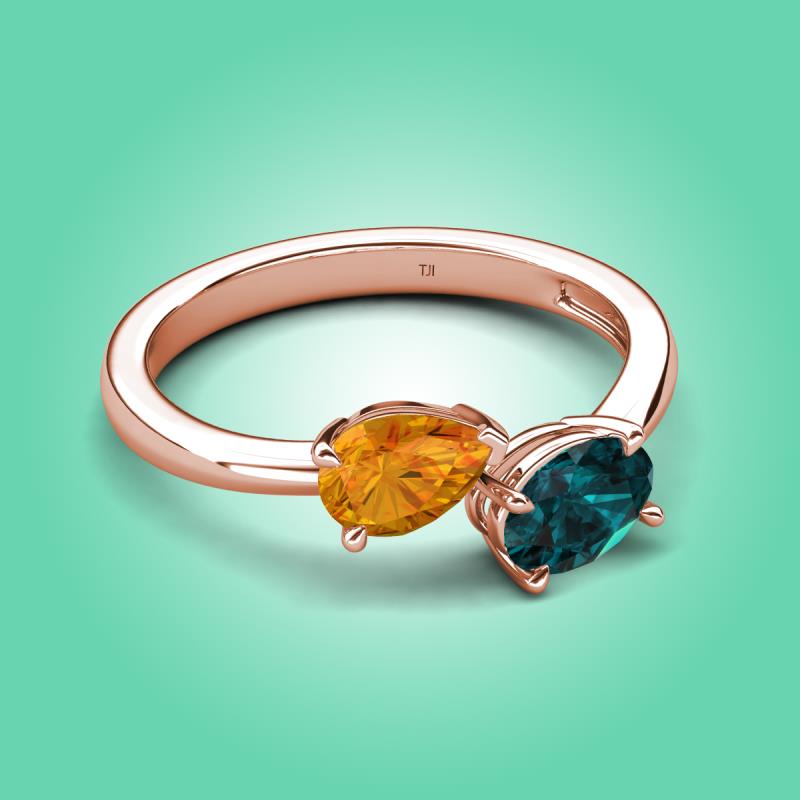 1.65 ctw Citrine Pear Shape 7x5 mm & London Blue Topaz Oval Shape 7x5 mm with Prong setting Two Stone Duo Women Engagement Ring in 14K Rose Gold More Details ...