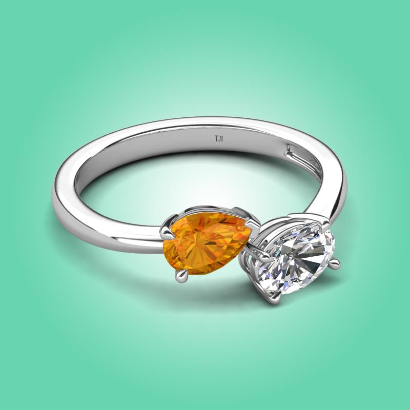 1.50 ctw Citrine Pear Shape 7x5 mm & Moissanite Oval Shape 7x5 mm with Prong setting Two Stone Duo Women Engagement Ring in 14K White Gold More Details ...