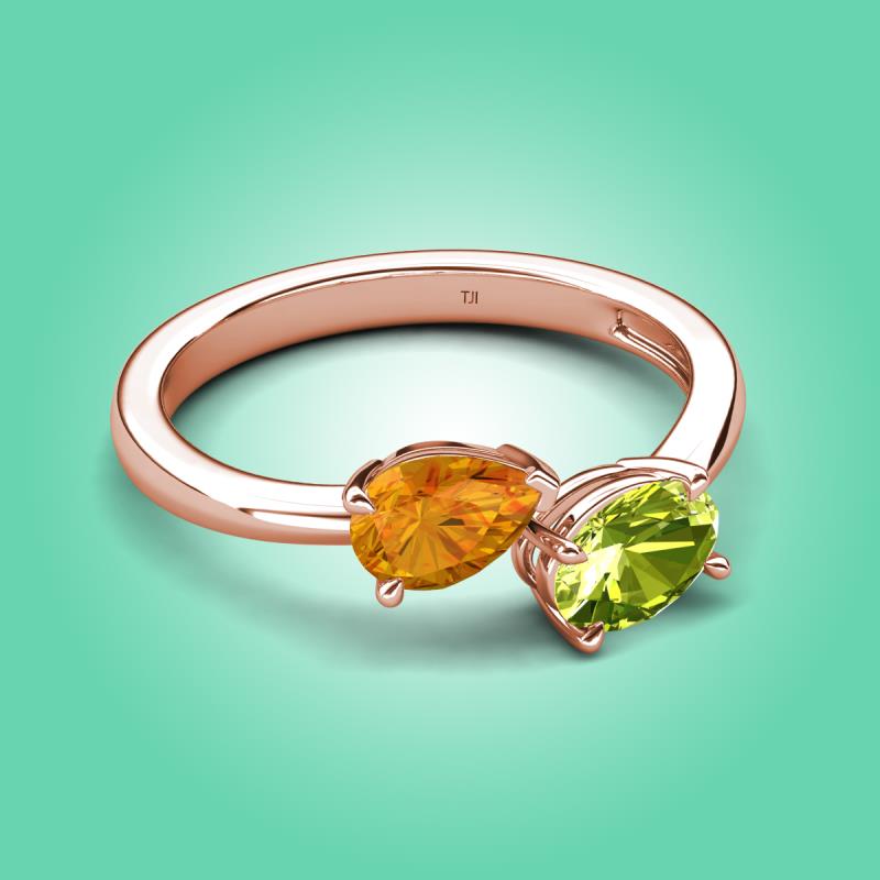 1.55 ctw Citrine Pear Shape 7x5 mm & Peridot Oval Shape 7x5 mm with Prong setting Two Stone Duo Women Engagement Ring in 18K Rose Gold More Details ...