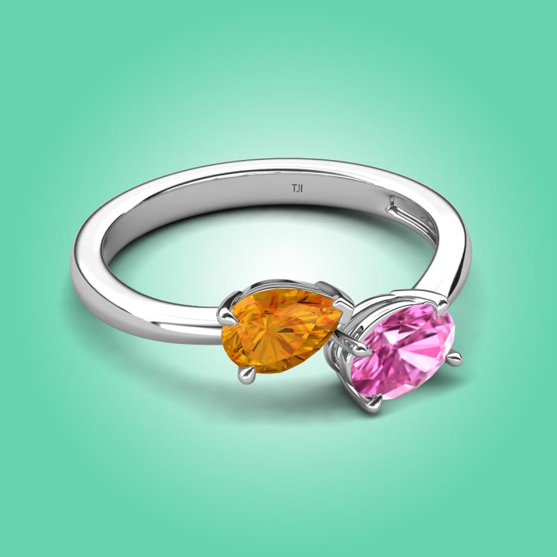 1.65 ctw Citrine Pear Shape 7x5 mm & Pink Sapphire Oval Shape 7x5 mm with Prong setting Two Stone Duo Women Engagement Ring in 14K White Gold More Details ...