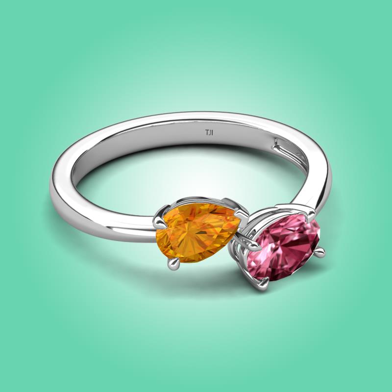 1.50 ctw Citrine Pear Shape 7x5 mm & Pink Tourmaline Oval Shape 7x5 mm with Prong setting Two Stone Duo Women Engagement Ring in 14K White Gold More Details ...