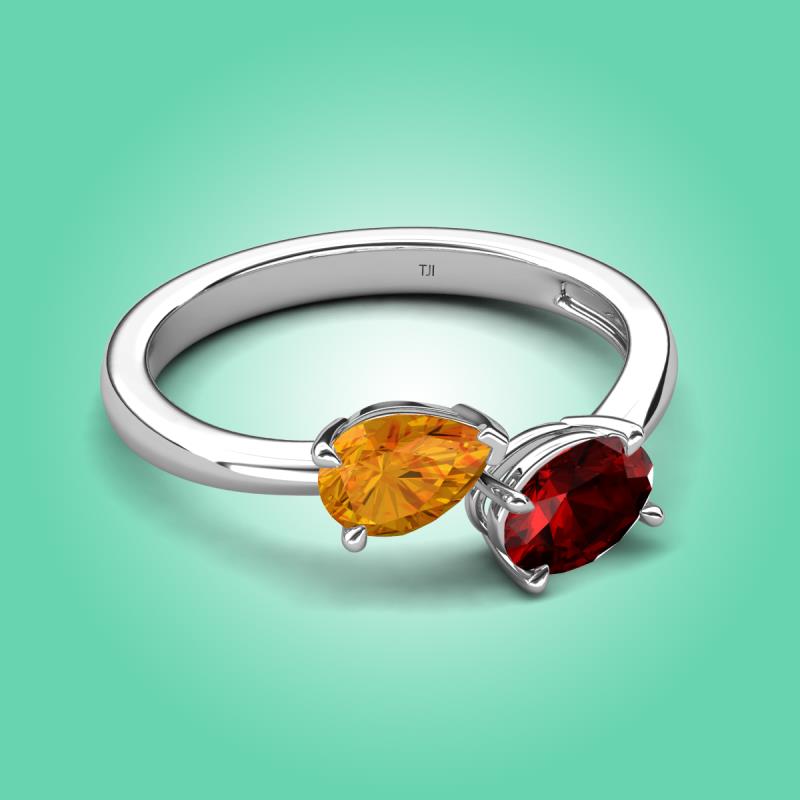1.60 ctw Citrine Pear Shape 7x5 mm & Red Garnet Oval Shape 7x5 mm with Prong setting Two Stone Duo Women Engagement Ring in Platinum More Details ...