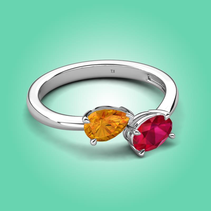1.55 ctw Citrine Pear Shape 7x5 mm & Ruby Oval Shape 7x5 mm with Prong setting Two Stone Duo Women Engagement Ring in 10K White Gold More Details ...