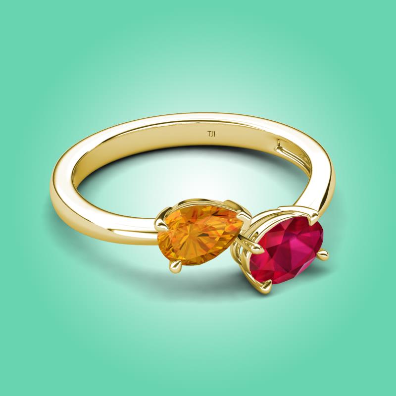 1.55 ctw Citrine Pear Shape 7x5 mm & Ruby Oval Shape 7x5 mm with Prong setting Two Stone Duo Women Engagement Ring in 18K Yellow Gold More Details ...