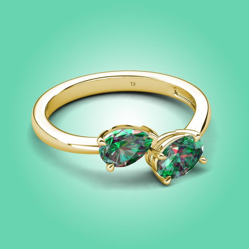 2.02 ctw Created Alexandrite Pear Shape 7x5 mm & Created Alexandrite Oval Shape 7x5 mm with Prong setting Two Stone Duo Women Engagement Ring in 10K Yellow Gold More Details ...