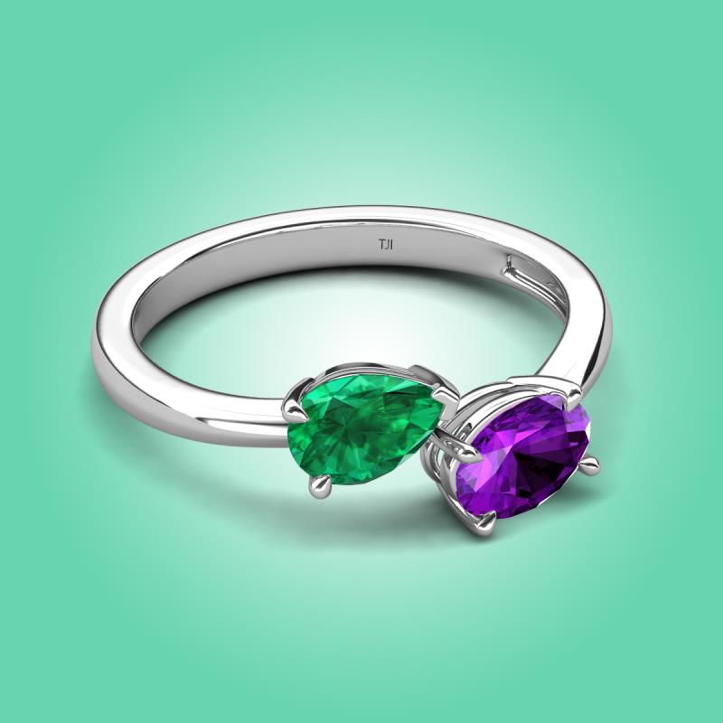 1.52 ctw Emerald Pear Shape 7x5 mm & Amethyst Oval Shape 7x5 mm with Prong setting Two Stone Duo Women Engagement Ring in 14K White Gold More Details ...
