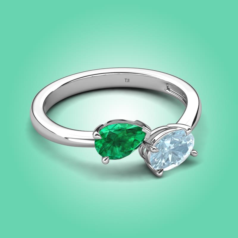 1.52 ctw Emerald Pear Shape 7x5 mm & Aquamarine Oval Shape 7x5 mm with Prong setting Two Stone Duo Women Engagement Ring in Platinum More Details ...