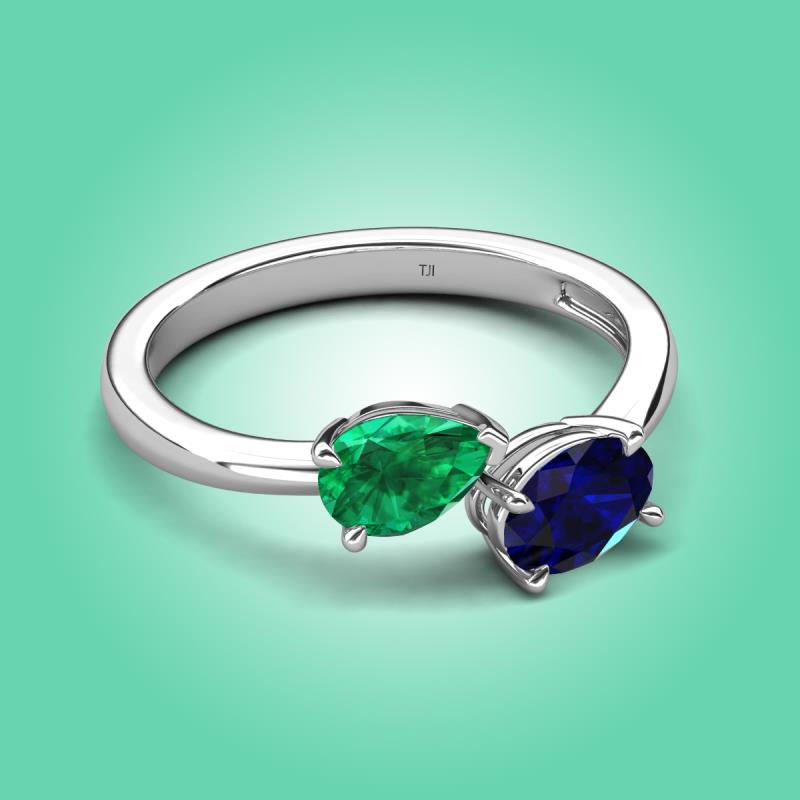 1.70 ctw Emerald Pear Shape 7x5 mm & Blue Sapphire Oval Shape 7x5 mm with Prong setting Two Stone Duo Women Engagement Ring in Platinum More Details ...