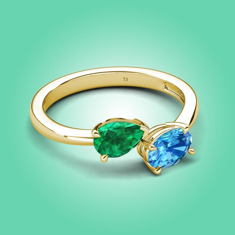 1.80 ctw Emerald Pear Shape 7x5 mm & Blue Topaz Oval Shape 7x5 mm with Prong setting Two Stone Duo Women Engagement Ring in 18K Yellow Gold More Details ...
