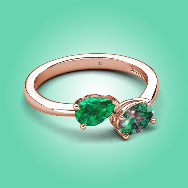1.96 ctw Emerald Pear Shape 7x5 mm & Lab Created Alexandrite Oval Shape 7x5 mm with Prong setting Two Stone Duo Women Engagement Ring in 18K Rose Gold More Details ...