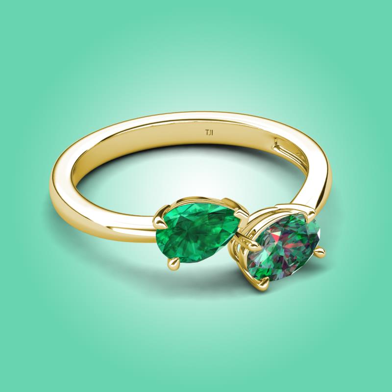 1.96 ctw Emerald Pear Shape 7x5 mm & Lab Created Alexandrite Oval Shape 7x5 mm with Prong setting Two Stone Duo Women Engagement Ring in 18K Yellow Gold More Details ...