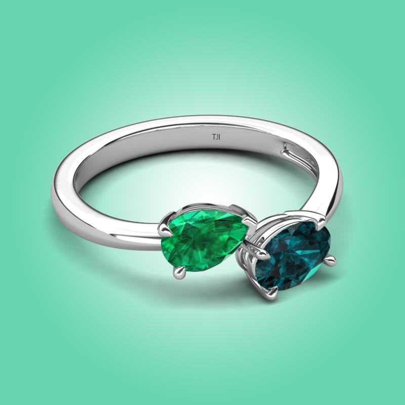1.80 ctw Emerald Pear Shape 7x5 mm & London Blue Topaz Oval Shape 7x5 mm with Prong setting Two Stone Duo Women Engagement Ring in 18K White Gold More Details ...